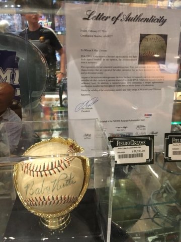 Babe Ruth signed ball at a baseball memorabilia store in Las Vegas